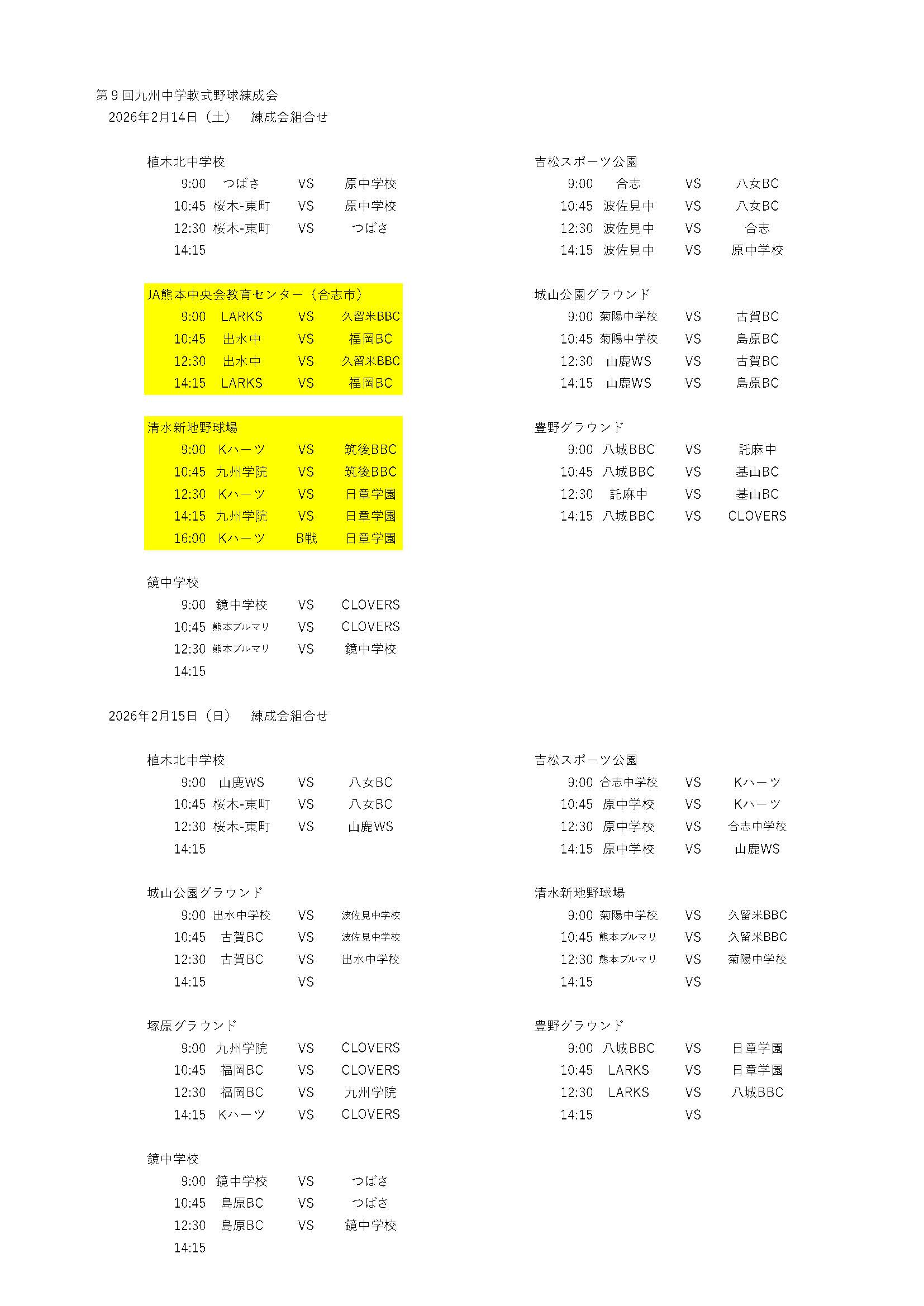 ■第4回九州中学軟式野球練成会トーナメント大会組合せ